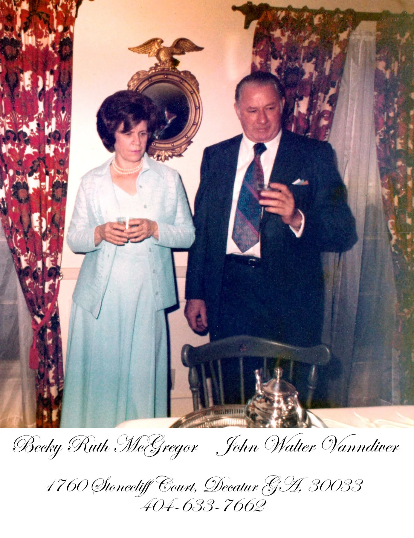 Becky and John at a small wedding party they hosted for the bride.