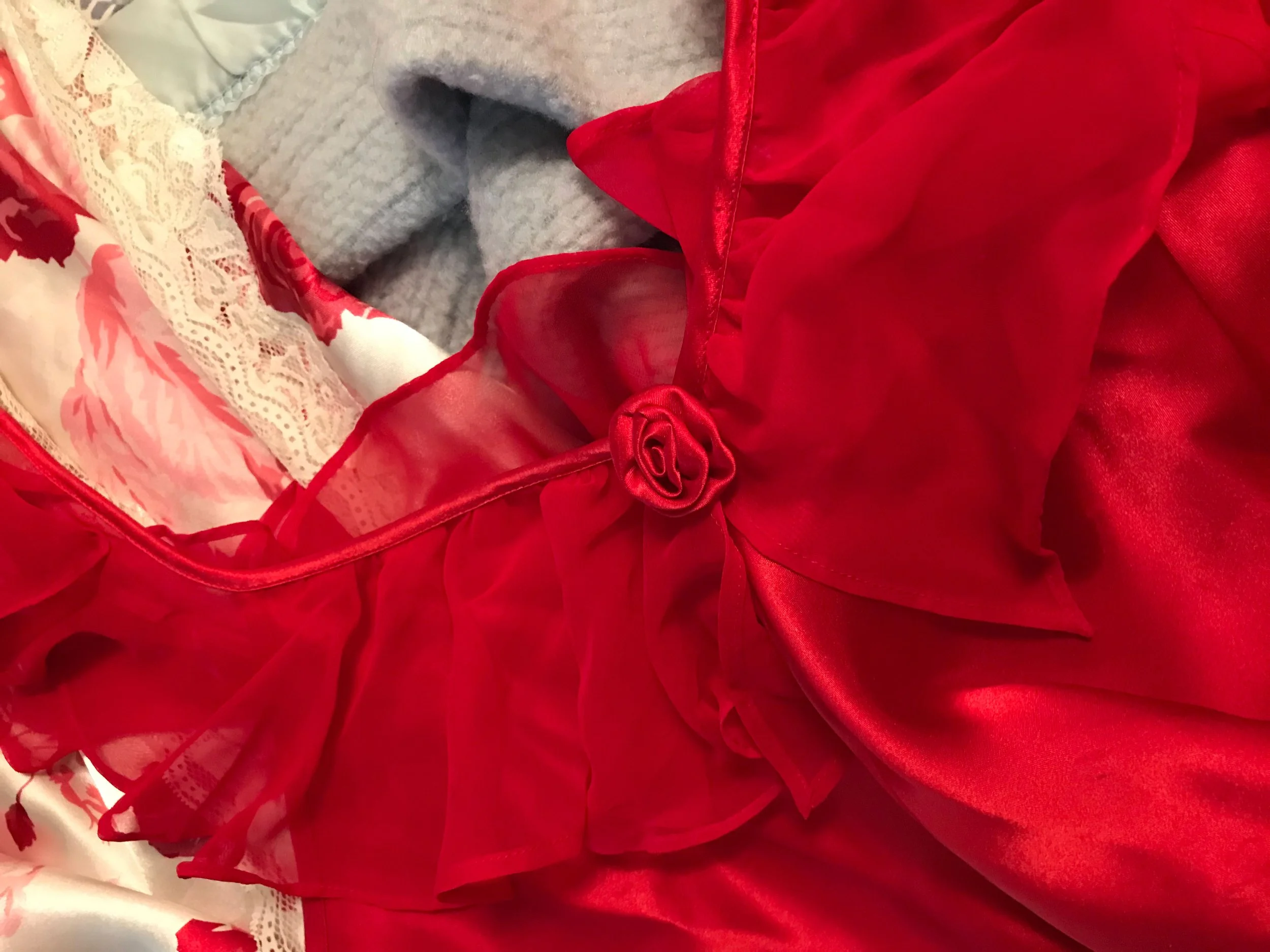 The red satin nightgown found tucked carefully in tissue.