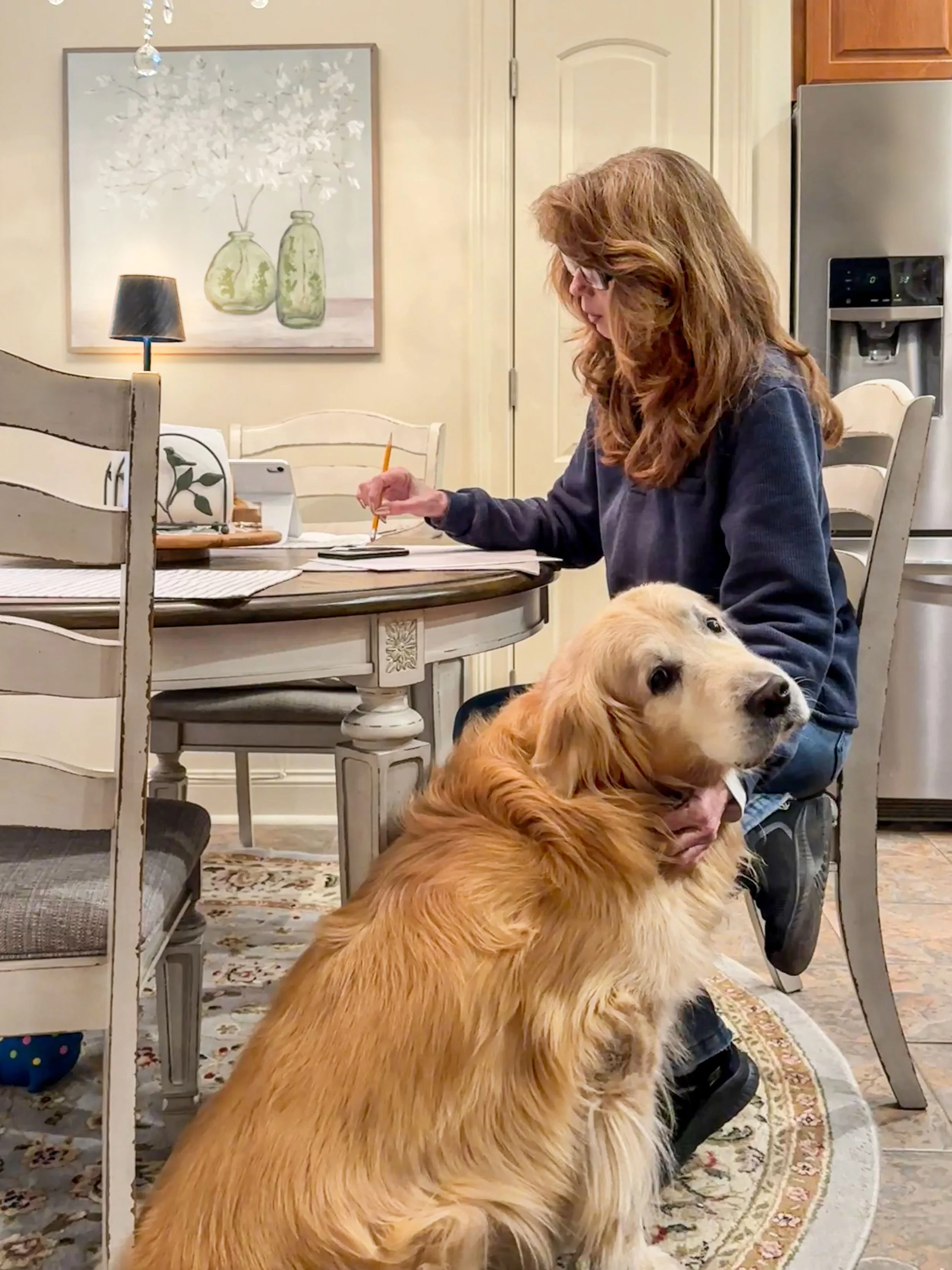 So since then, I've been taking an online real estate course. 75 hours. (With Uncle Bob's patient help as in the photo.) I took it slow because I had previous commitments to complete. Today, however, with God's gentle hand on my shoulder, I passed my real estate exam. 1st attempt. I'm quite pleased and relieved.